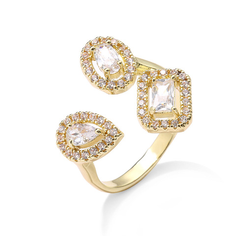 新しいデザインライトラグジュアリーオープニングシルバーフィンガーリングファッショナブルな18Kゴールドメッキ真鍮ジルコンリング女性用
